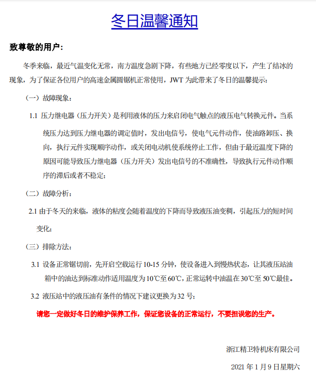 冬日溫馨通知